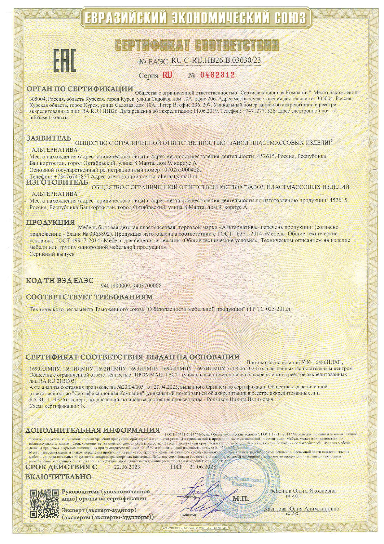 ÅÀÝÑ RU Ñ-RU.ÍÂ26.Â.03030/23 äî 21/06/2028