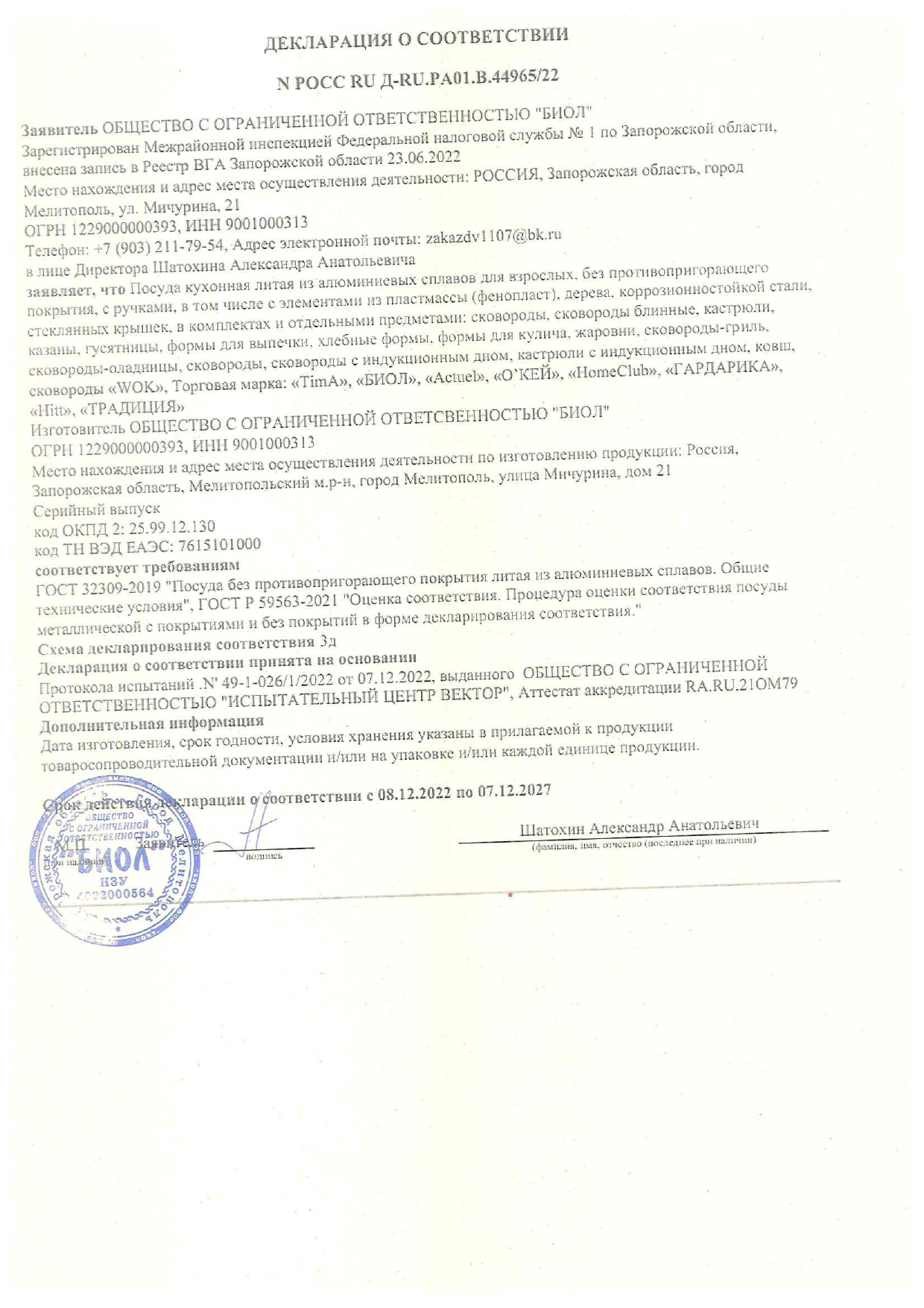 ÐÎÑÑ RU Ä-RU.PA01.B.44965/22 äî 07/12/2027
