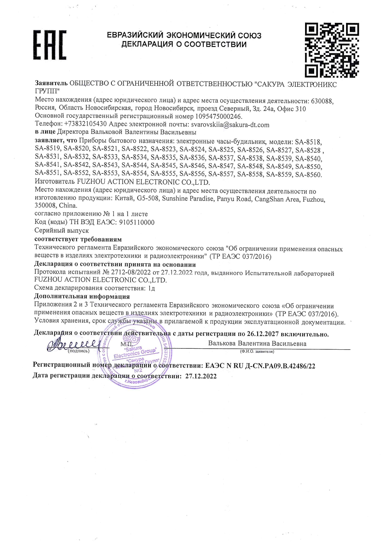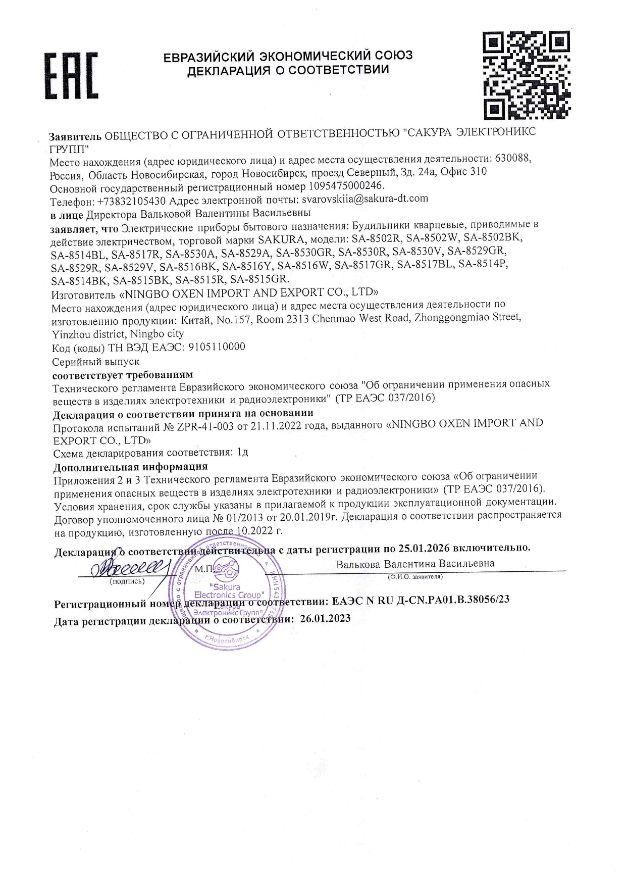 Áóäèëüíèê ýëåêòðîííûé SA-8526