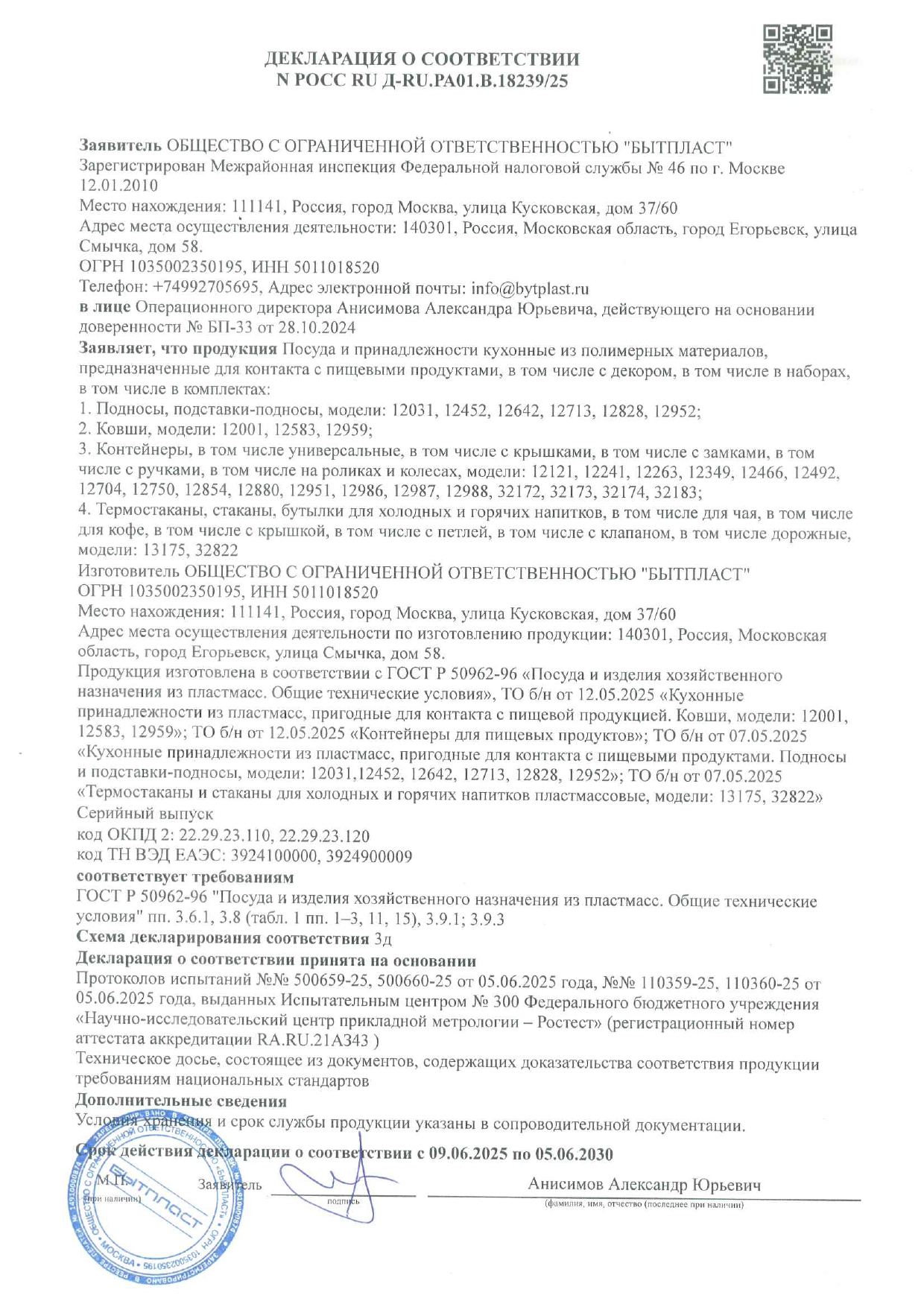 POCC RU A-RU.PA01.B.18239/25 äî 05/06/2030