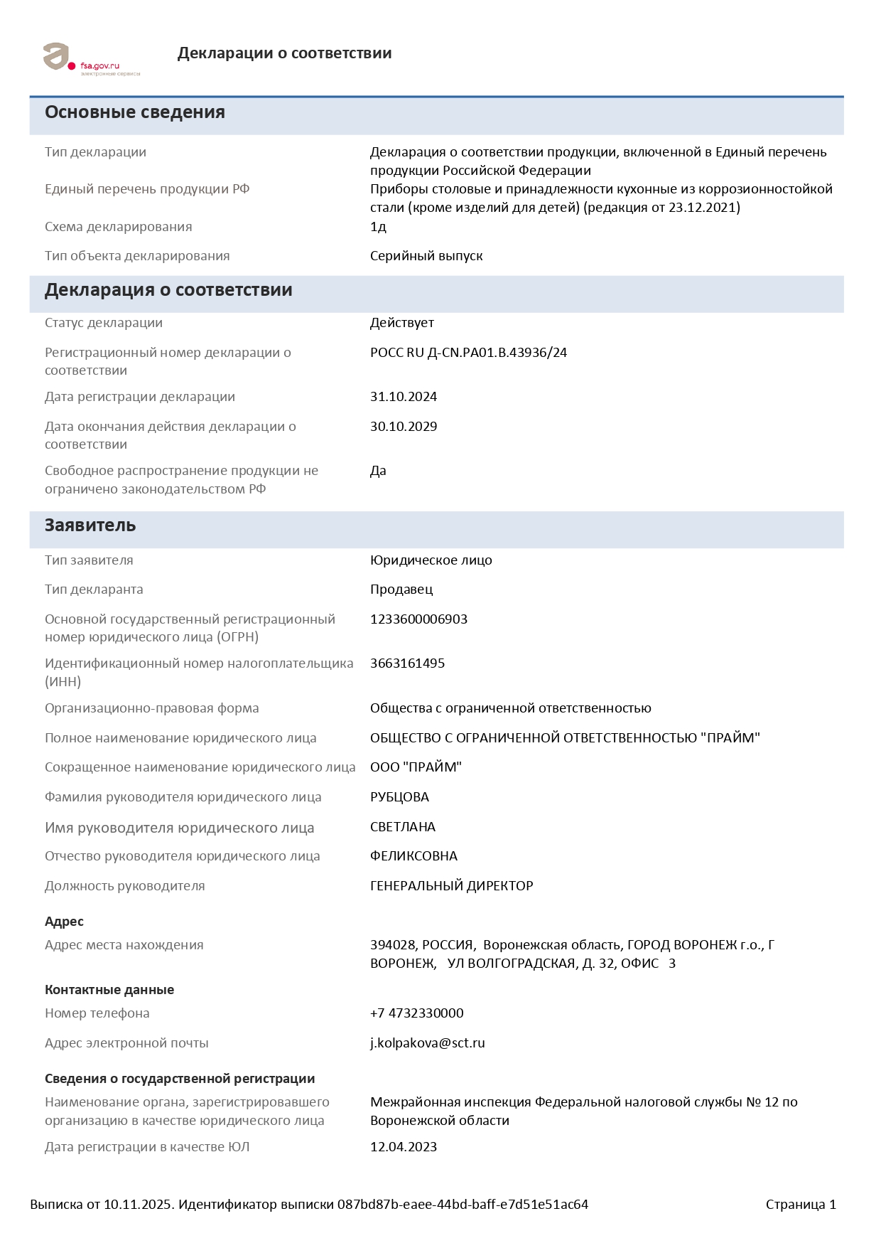 ÐÎÑÑ RU Ä-CN.ÐÀ01.Â.43936/24 äî 30/10/2029