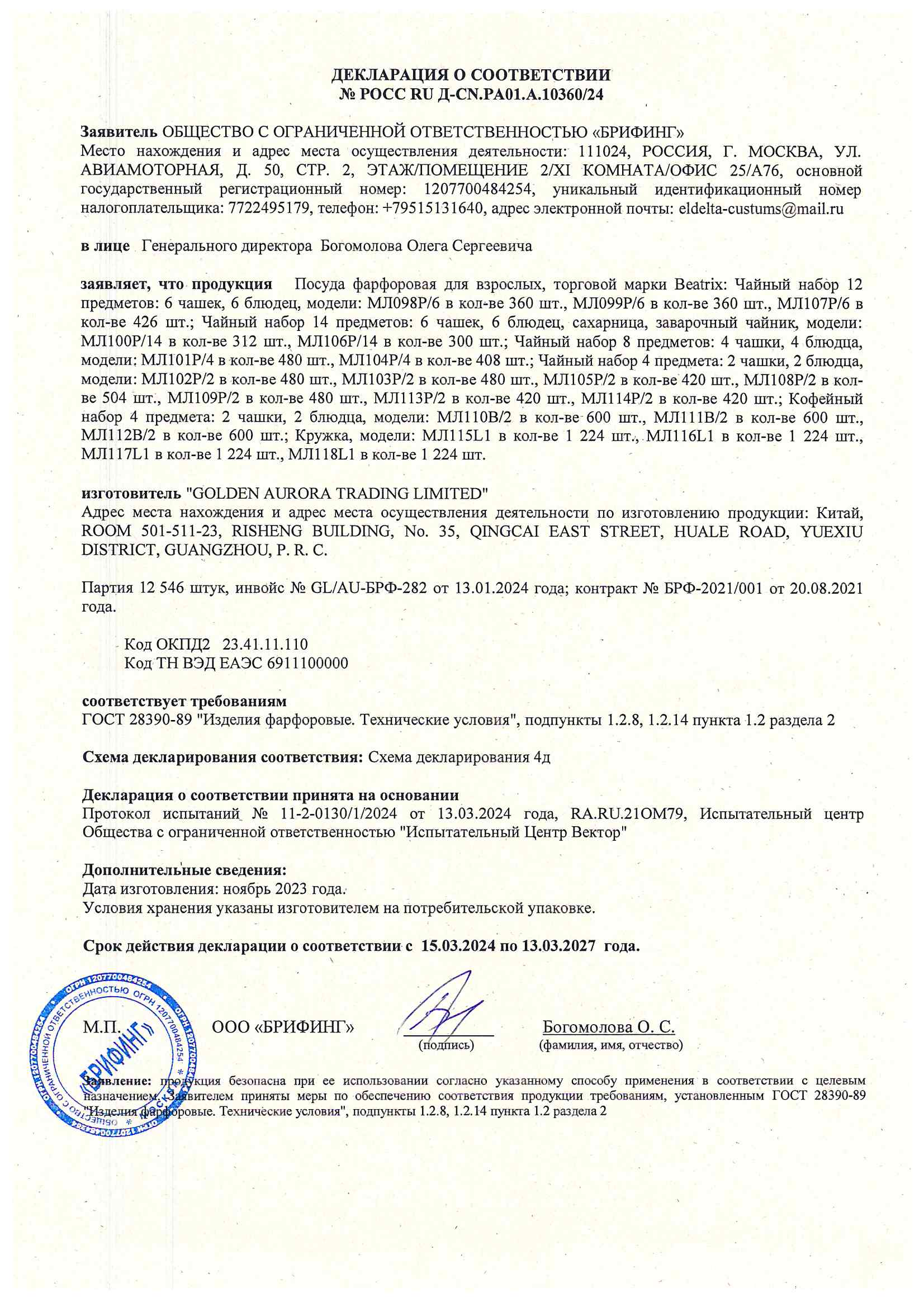 ÐÎÑÑ RU Ä-CN.ÐÀ01.À.10360/24 äî 13/03/2027