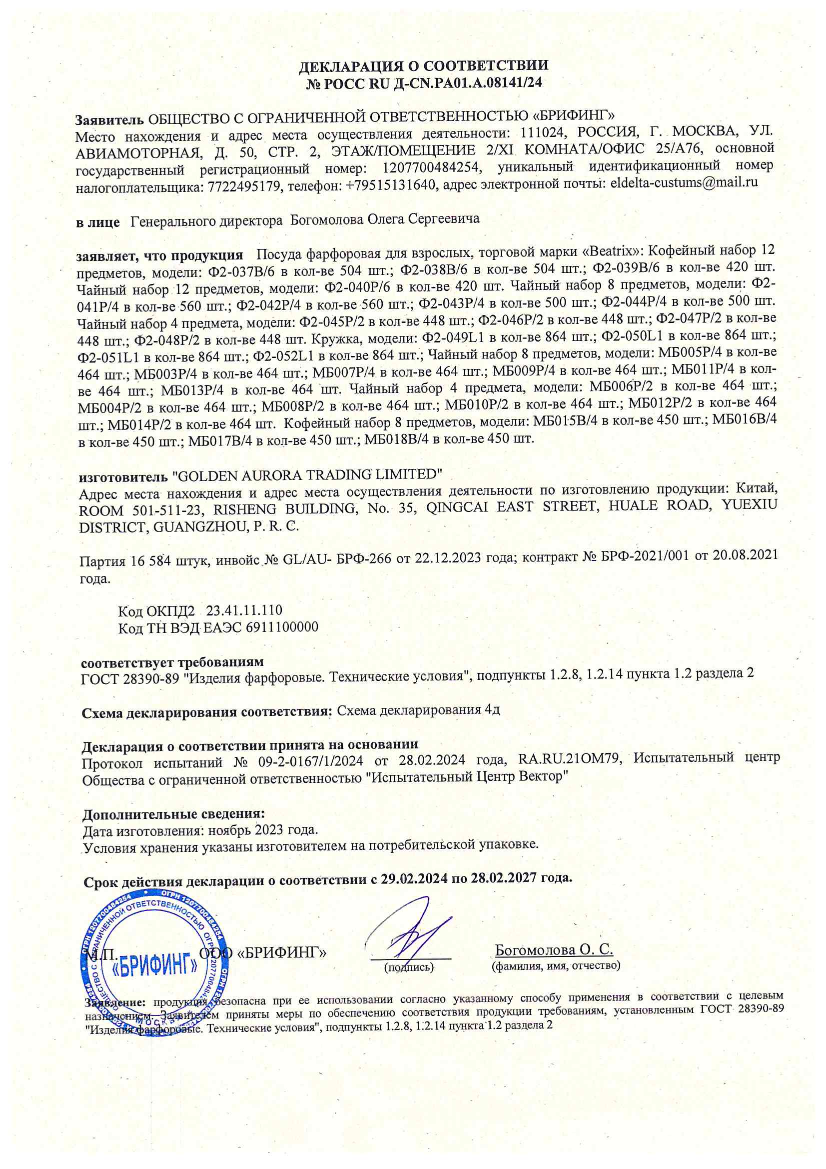 ÐÎÑÑ RU Ä-CN.ÐÀ01.À.08141/24 äî 28/02/2027
