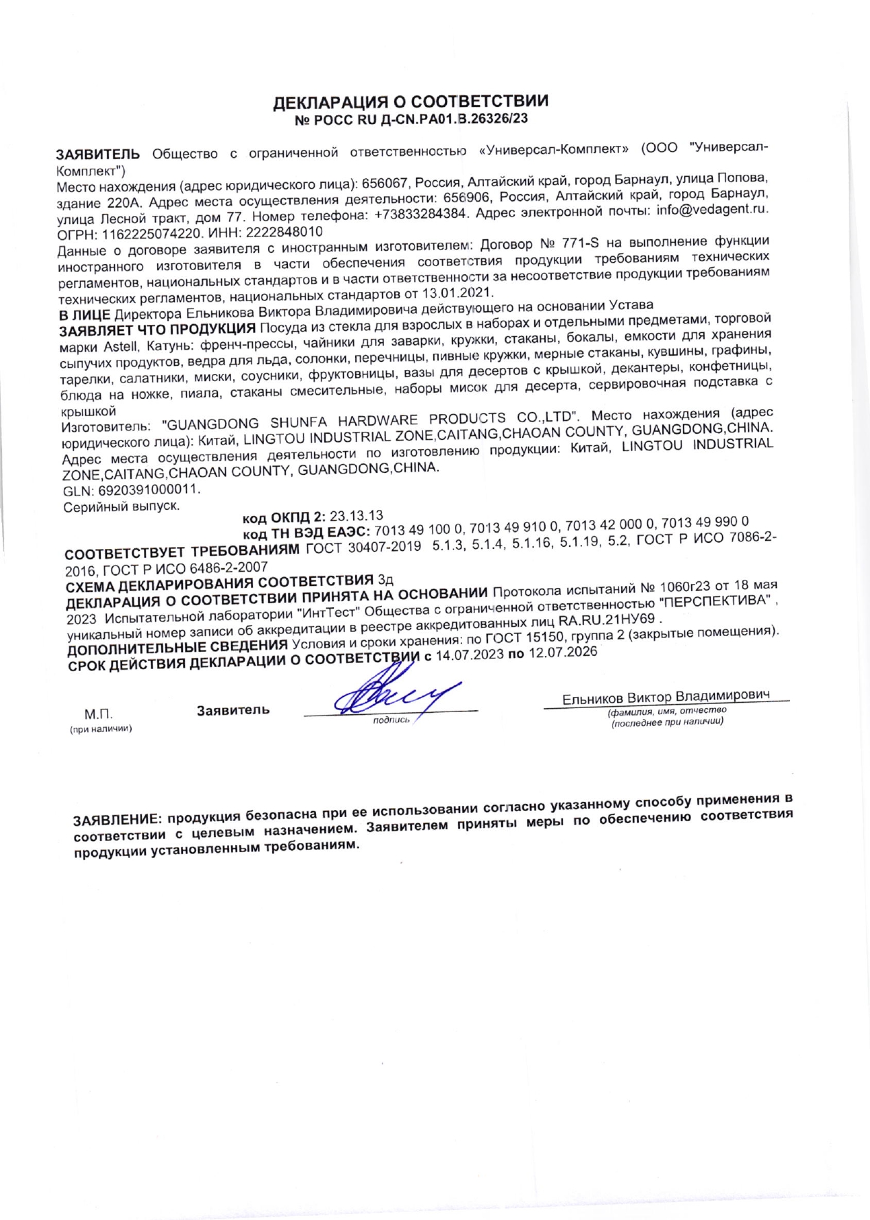 ÐÎÑÑ RU Ä-ÑN.PA01.B.26326/23 äî 12/07/2026