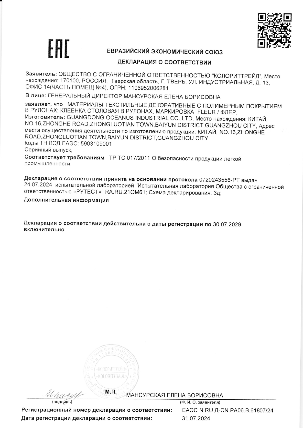 ÅÀÝÑ N RU Ä-CN.ÐÀ06.Â.61807/24 äî 30/07/2029