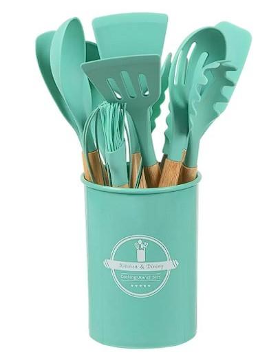 Íàáîð êóõîííûõ ïðèíàäëåæíîñòåé 12ïð áàìáóê/ñèëèêîí íà ïîäñòàâêå