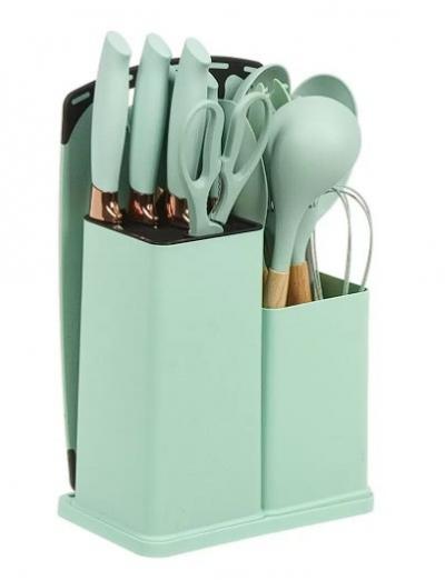 Íàáîð êóõîííûõ ïðèíàäëåæíîñòåé 18ïð áàìáóê/ñèëèêîí/íåðæ íà ïîäñòàâêå