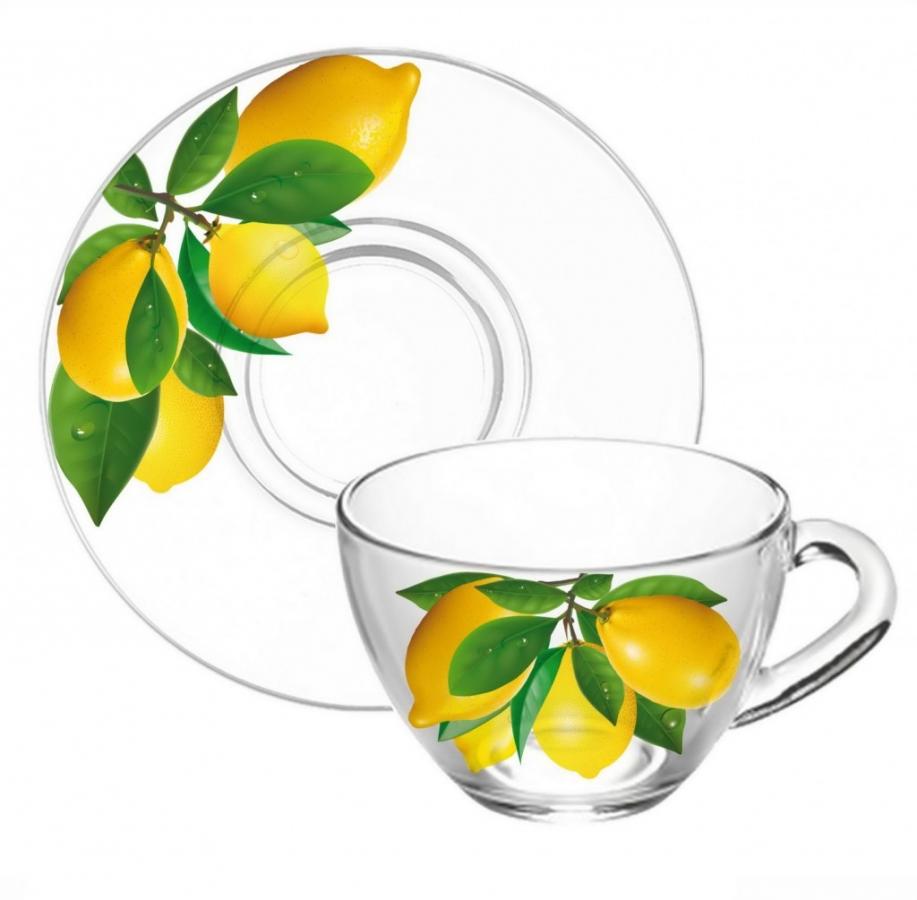 Íàáîð ÷àéíûé 4ïð (2 ÷àøêè+2 áëþäöà) ñòåêëî [ÄÓÝÒ] ËÈÌÎÍÛ