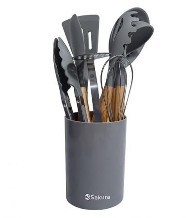 Íàáîð êóõîííûõ ïðèíàäëåæíîñòåé 10ïð ñèëèêîí íà ïîäñòàâêå ÑÅÐÛÉ