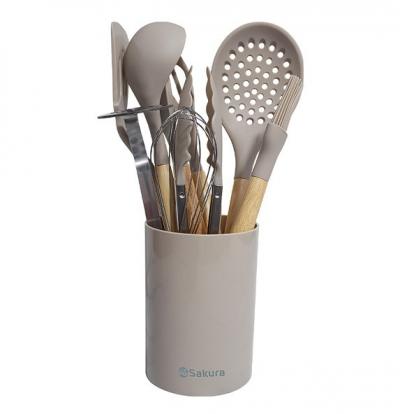 Íàáîð êóõîííûõ ïðèíàäëåæíîñòåé 10ïð ñèëèêîí íà ïîäñòàâêå ÁÅÆÅÂÛÉ