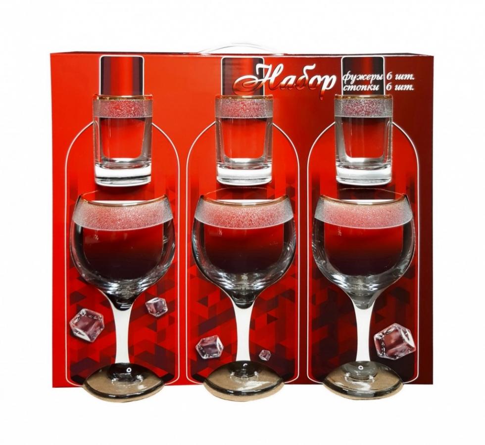 Íàáîð 12ïð (6 ôóæåðîâ ä/âèíà + 6 ñòîïîê) [ÀÑÊÅÒ] Ãðàâèðîâêà çîëîòî
