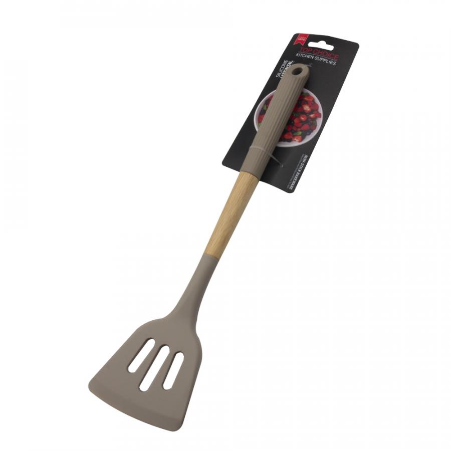 Ëîïàòêà êóëèíàðíàÿ ñèëèêîíîâàÿ ñ ïðîðåçÿìè 34*8*3ñì äåðåâ. ðó÷êà ÁÅÆÅÂÛÉ