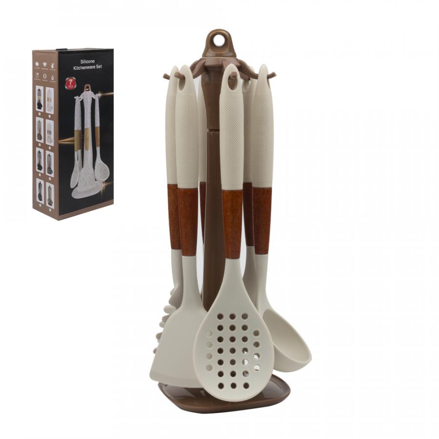 Íàáîð êóõîííûõ ïðèíàäëåæíîñòåé 7ïð äåðåâî/ñèëèêîí íà ïîäñòàâêå ÌÎËÎ×ÍÛÉ