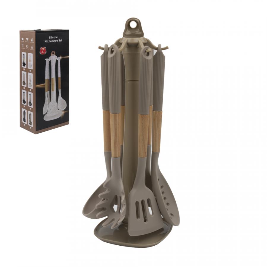 Íàáîð êóõîííûõ ïðèíàäëåæíîñòåé 7ïð äåðåâî/ñèëèêîí íà ïîäñòàâêå ÁÅÆÅÂÛÉ