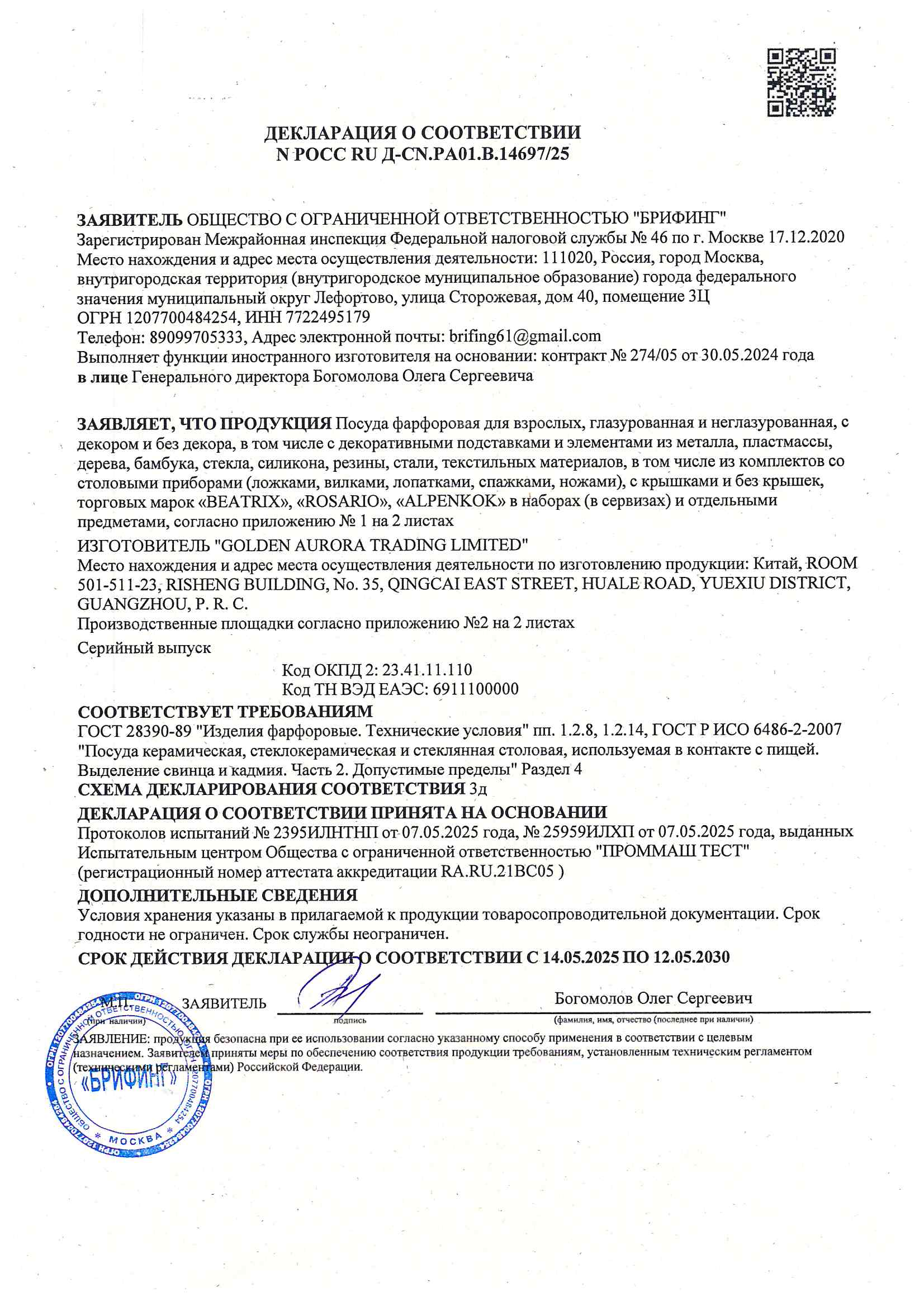 ÐÎÑÑ RU Ä-CN.ÐÀ01.Â.14697/25 äî 12/05/2030