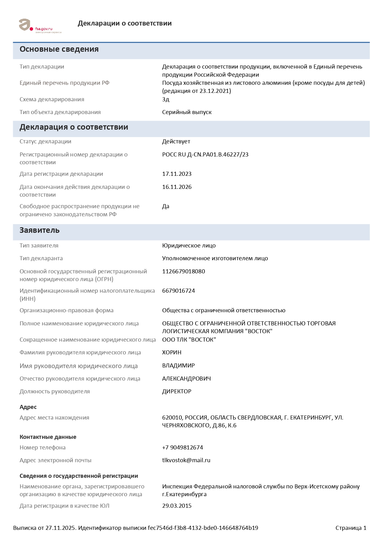 ÐÎÑÑ RU Ä-CN.ÐÀ01.Â.46227/23 äî 16/11/2026