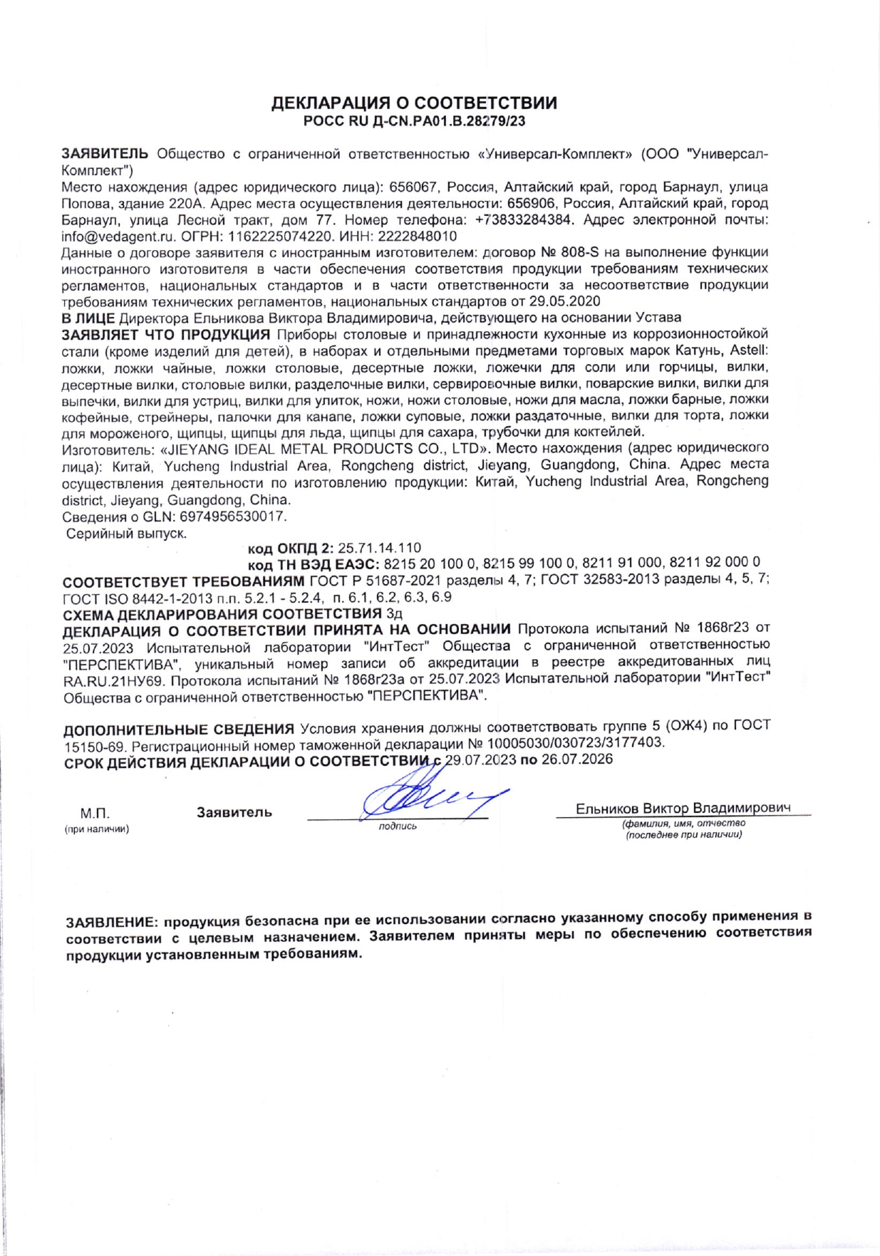 ÐÎÑÑ RU Ä-CN.PA01.B.28279/23 äî 26/07/2026