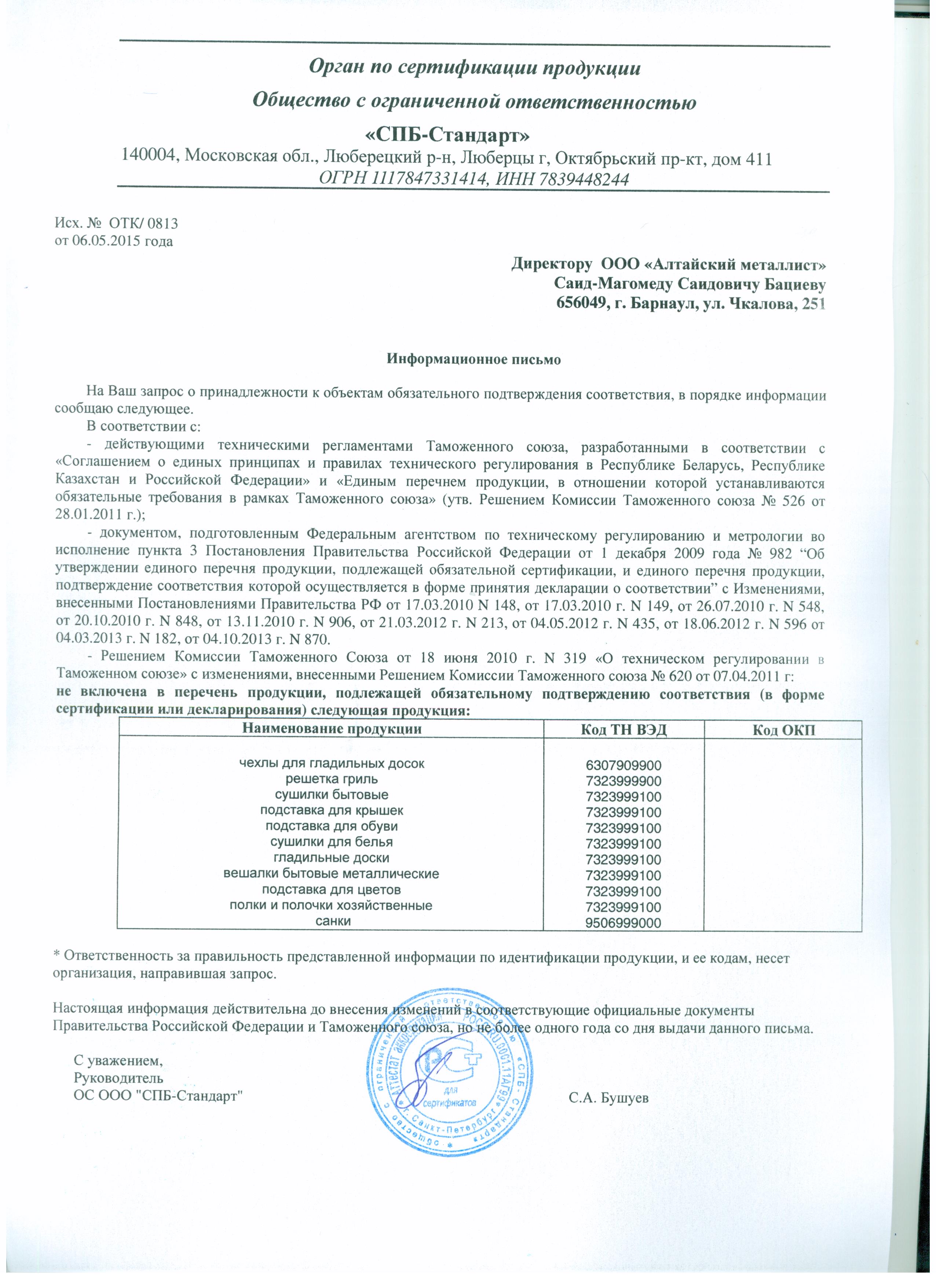 - Ïðîèçâîäèòåëü: ÀËÒÀÉÑÊÈÉ ÌÅÒÀËËÈÑÒ