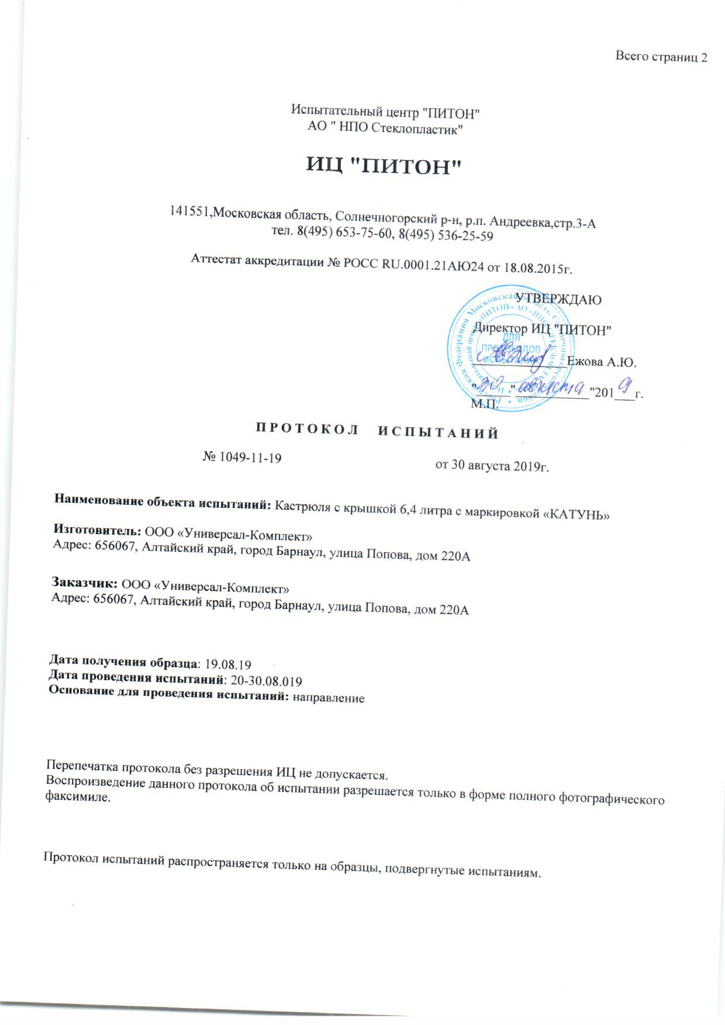 - Ïðîèçâîäèòåëü: ÊÀÒÓÍÜ ÎÁÙÅÏÈÒ