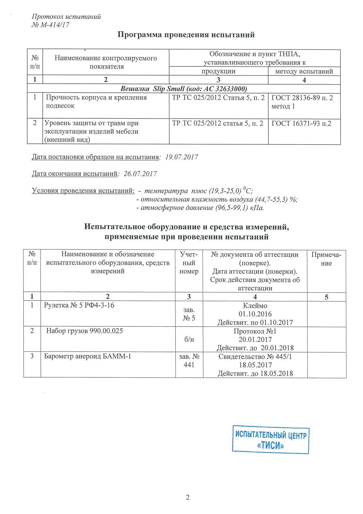 Ïðîòîêîë èñïûòàíèé ¹Ì-414/17
