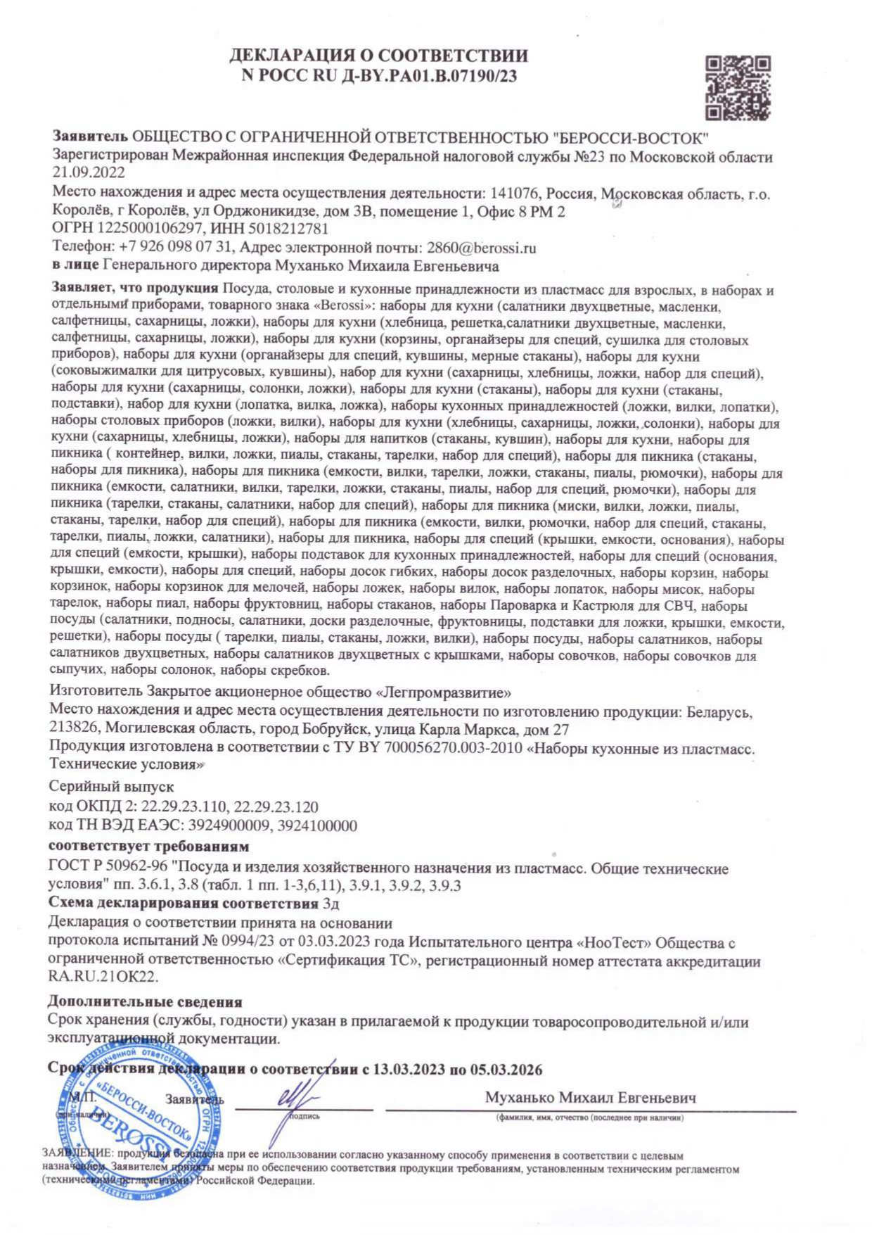 POCC RU Ä-BY.PA01.B.07787/26 äî 16/03/2029