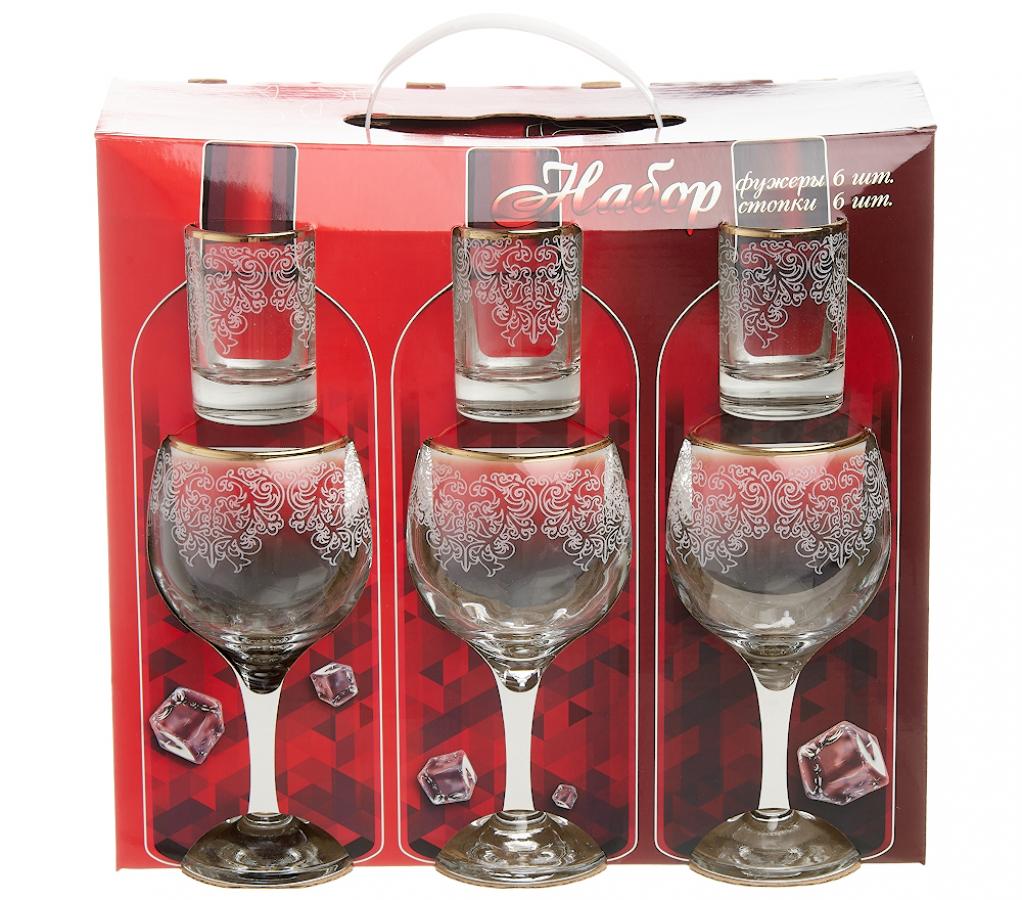 Íàáîð 12ïð (6 ôóæåðîâ ä/âèíà + 6 ñòîïîê) [ÁÎßÐÑÊÈÉ] Ãðàâèðîâêà çîëîòî