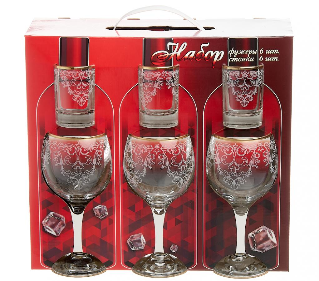 Íàáîð 12ïð (6 ôóæåðîâ ä/âèíà + 6 ñòîïîê) [ÂÈÇÀÍÒÈß] Ãðàâèðîâêà çîëîòî